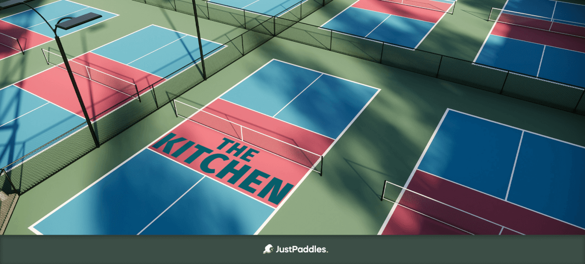 La denominada «cocina» en pickleball es un área rectangular de 7 x 20 pies (2,13 x 6,1 m) situada en cada extremo de la red. Esta área es también conocida como la «zona no-volea» porque no se permite golpear la pelota en el aire mientras se está dentro de ella. En otras palabras, la pelota debe botar una vez antes de que un jugador pueda golpearla si está dentro de la cocina.